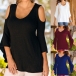 Take on the day in reliable comfort with this open shoulder T-shirt! Craft from soft fabric in a loose fit,
