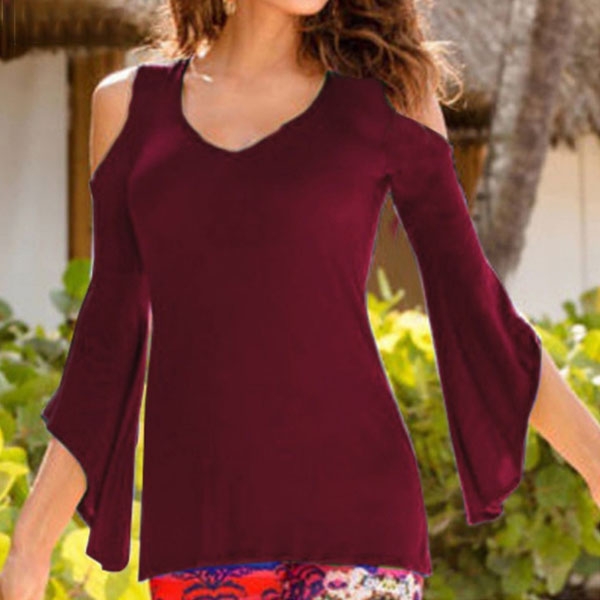 round neckline, open-shoulder to showcase your smooth shoulder, bell sleeve, come with solid color