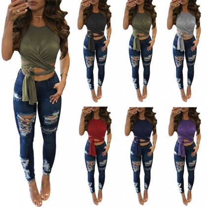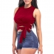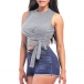 soft cotton material woven, with sleeveless and round neck and slim fit.Lace-up design that can