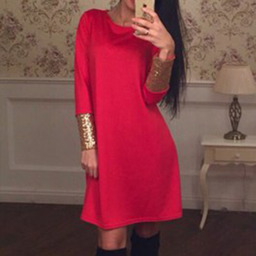 exquisite dress! Solid color style,with long sleeve,round neck and a relaxed silhouette,stylish and delicate.