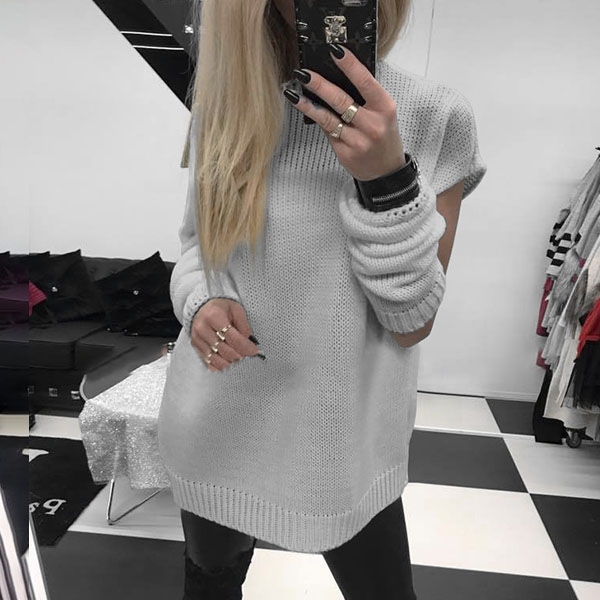 Add some fresh blood to your wardrobe with this chic sweater. Solid color style,with short sleeve