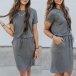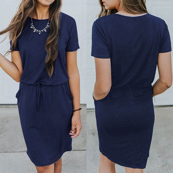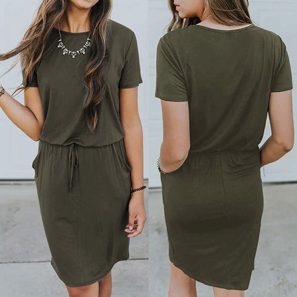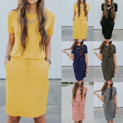 sleeve and round neck design,the drawstring waist design can better highlight your figure.