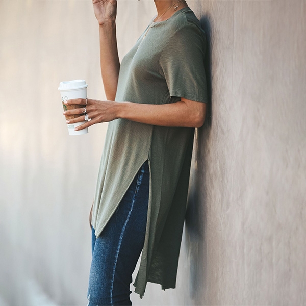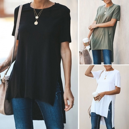 its soft and breathable fabric can ensure you a comfortable day,while the high-low hem design