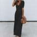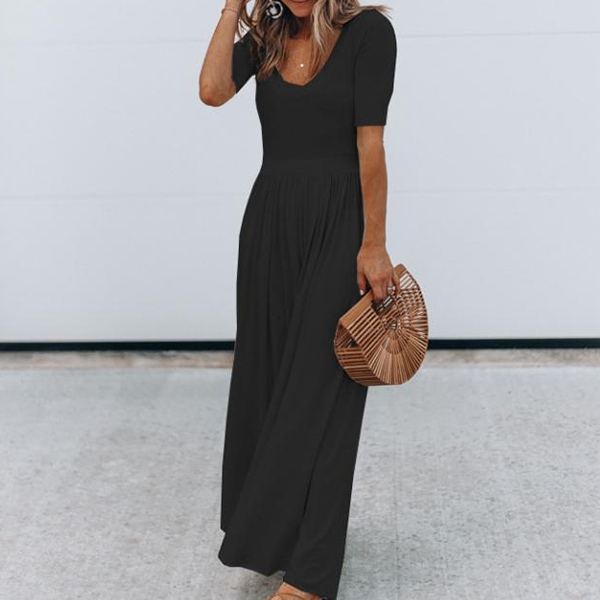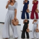 with short sleeve,round neck,high waist and wide-leg silhouette design,this piece is sure to