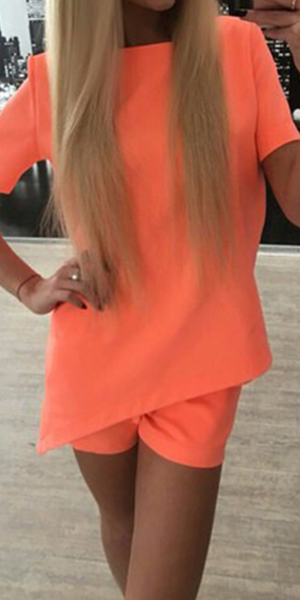 choice. Solid color style,including a short sleeve t-shirt and a high waist shorts,and t-shirt with backless