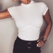 Boasts a solid color,with short sleeve,mock neck and a fit silhouette design,this piece offers