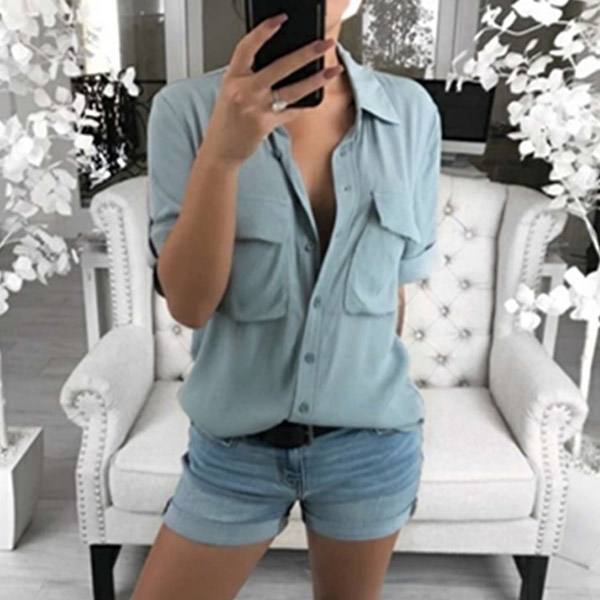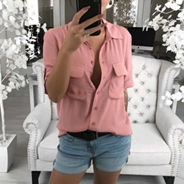This shirt is designed with a solid color,short sleeve,POLO Collar and front chest patch pockets design,