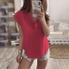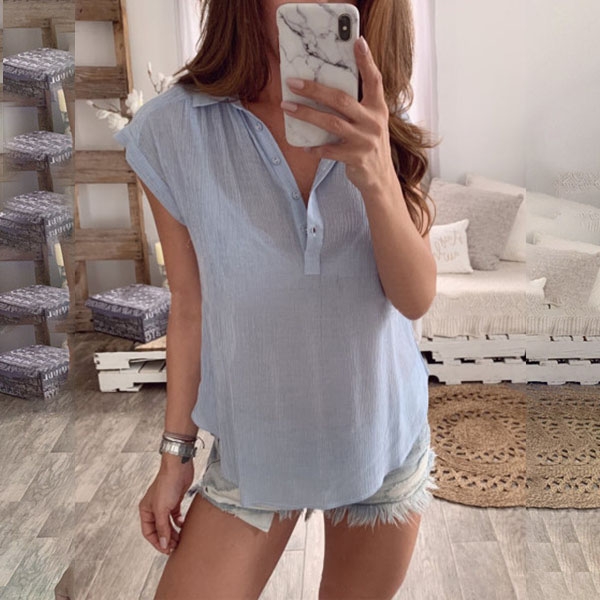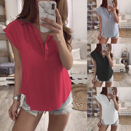This blouse comes with a solid color,which makes it look simple yet generous. Finished with short