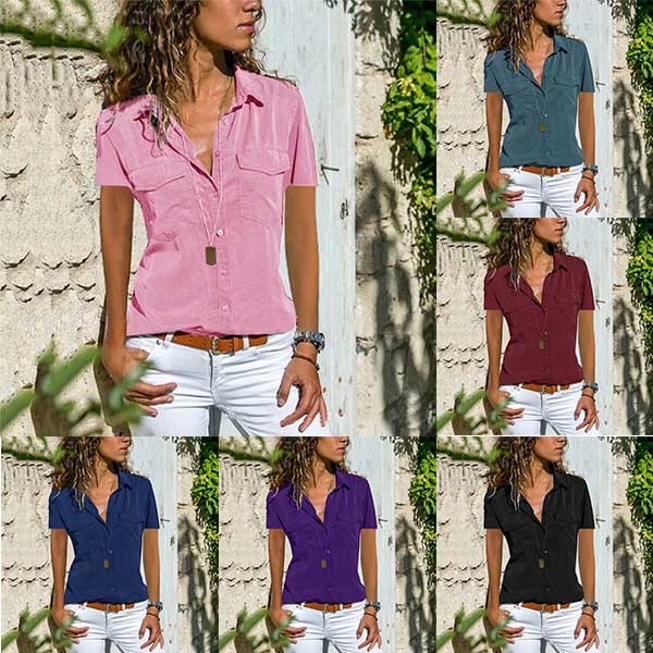 Stay cozy and effortless stylish in this shirt. It features a solid color,finished with short sleeve,