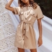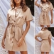 have this shirt dress in your wardrobe. Solid color style,with short sleeve,POLO collar and