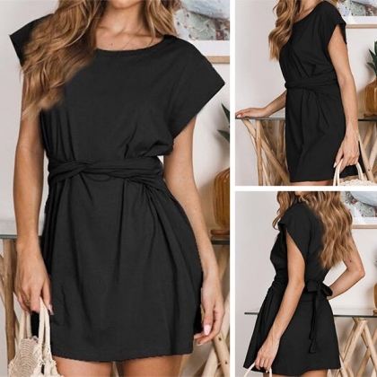 It is finished with short sleeve and round neck design,the waist strap design can better highlight your figure.