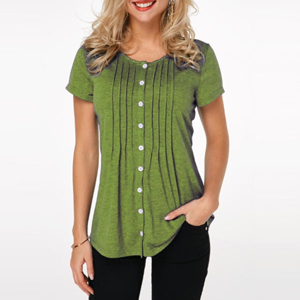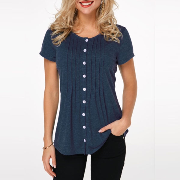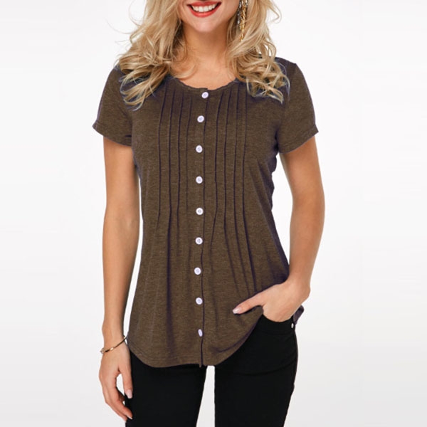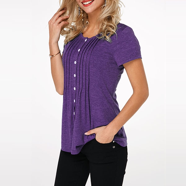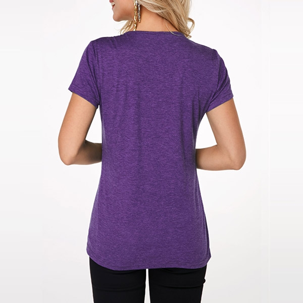 Keep cozy and stylish in this t-shirt! It comes with a solid color,accompanied with short sleeve,