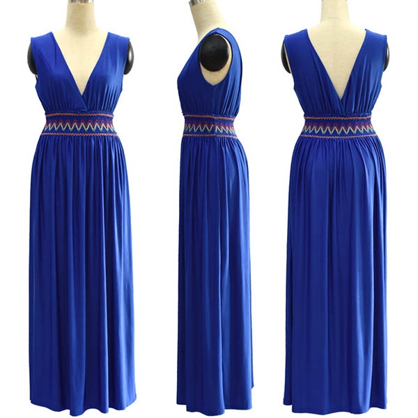 Sexy Backless Deep V-neck Sleeveless High Waist Maxi Dress