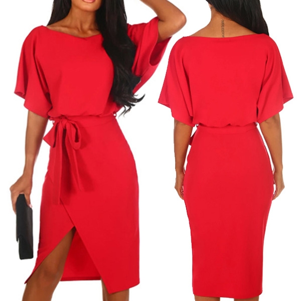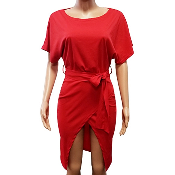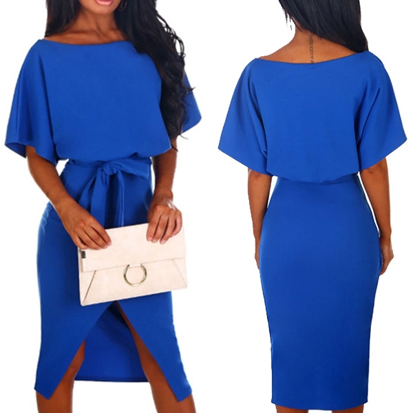 This dress comes with a solid color,simple yet elegant. Finished with short sleeve,round neck and an