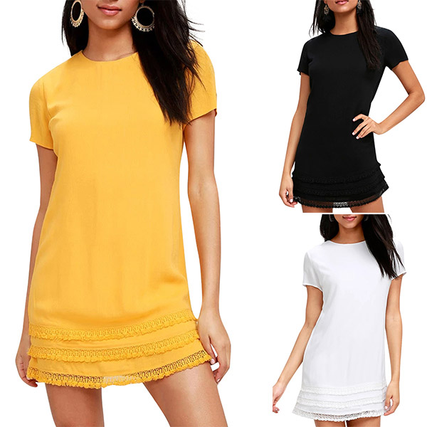 So we suggest you this easy-to-wear dress. Features a solid color,with short sleeve,round neck and