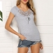 and lace spliced design,chic yet stylish. All-match design allows to be matched with different style bottoms.