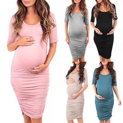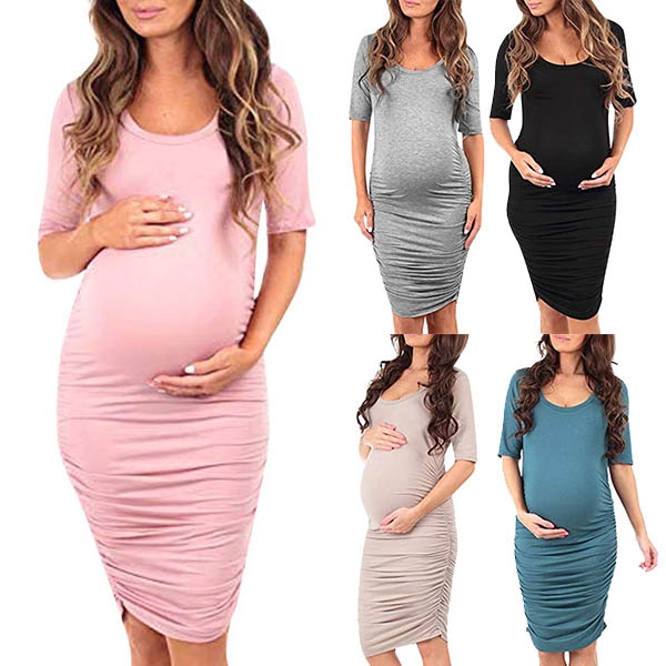 This dress that bears a simple design style is perfect fit for these pregnant women. Solid color style,