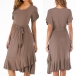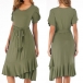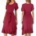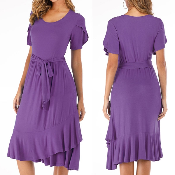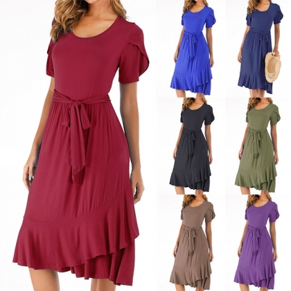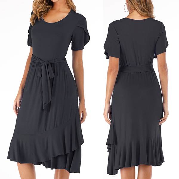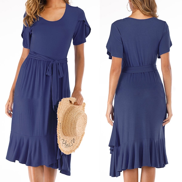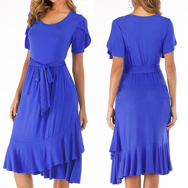 Finished with short sleeve,round neck and ruffle hem design,this versatile dress is fit for