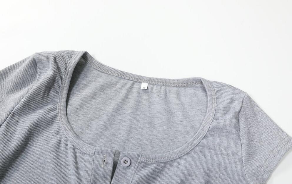 Neckline part with buttons design allows it to be a v-neck style. Designed with short sleeve,round neck
