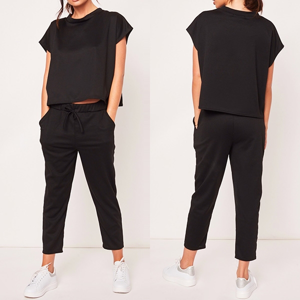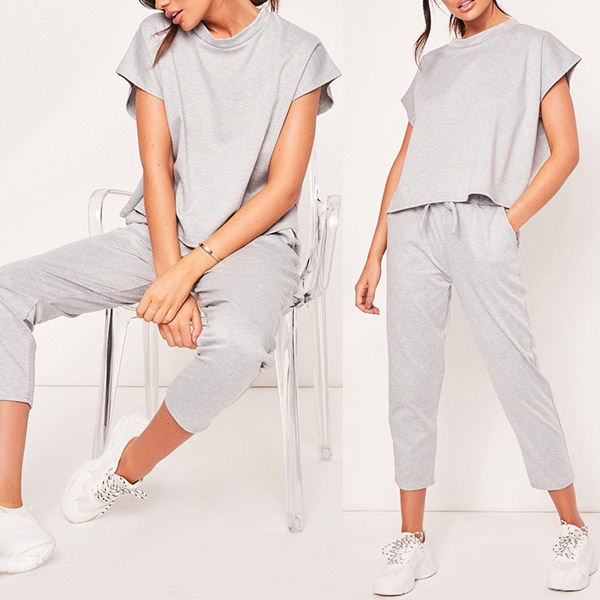 On your lazy days,you can count on this two-piece set to have a wonderful day. It comes with a solid color,