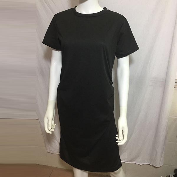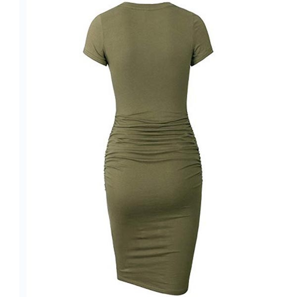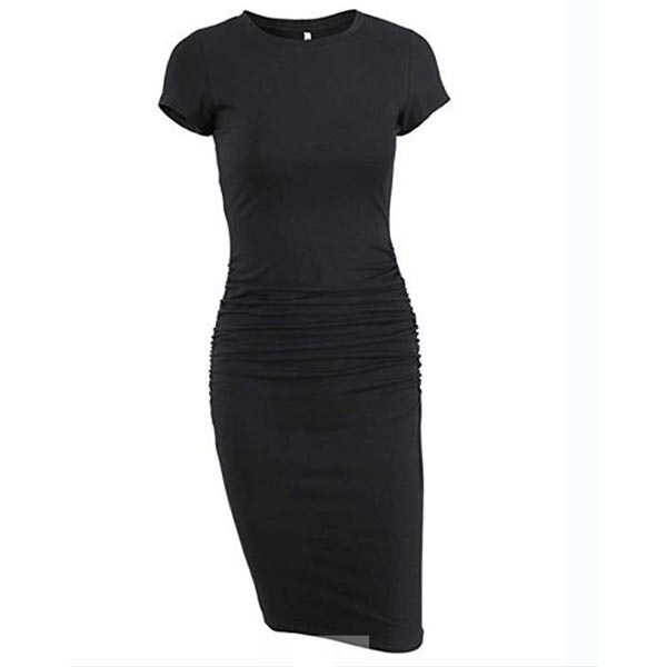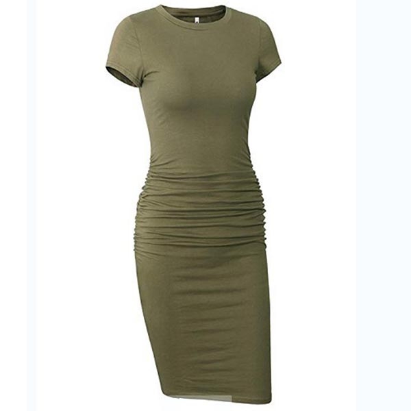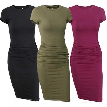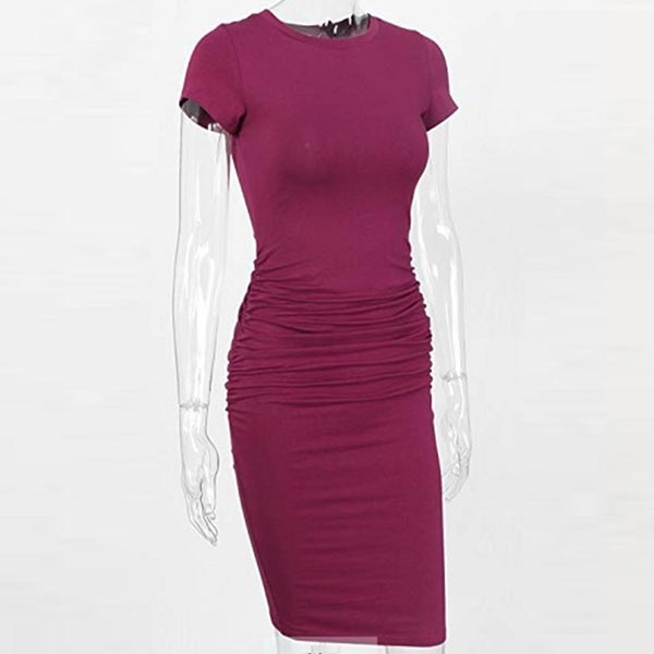 Comes with a solid color,with short sleeve,round neck and a fit silhouette,this dress can showcase