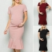 Solid color style,outfitted with short sleeve,round neck,ruffle hem and a clean silhouette,this dress not