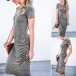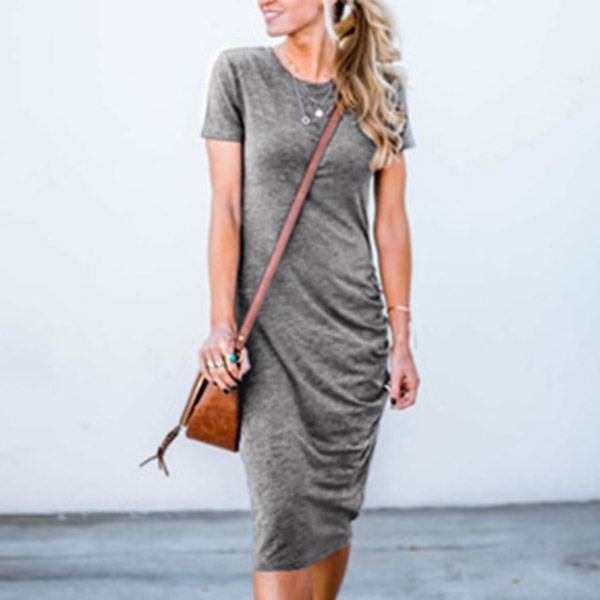 Fashion Solid Color Short Sleeve Side-wrinkled Dress