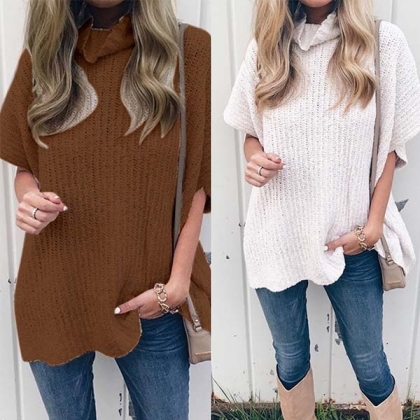 It comes with a solid color,finished with short sleeve,turtleneck and a loose silhouette,chic yet stylish.
