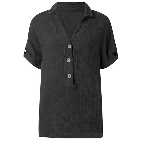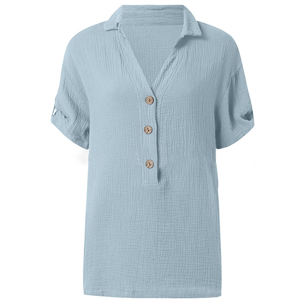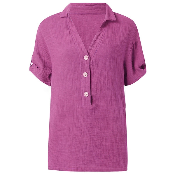 Fashion Solid Color Short Sleeve V-neck Blouse