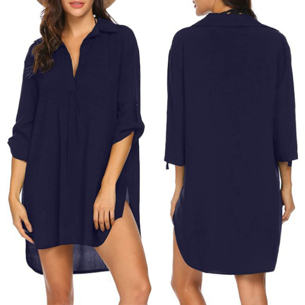 A cool way to incorporate comfort into your everyday look is by adding this dress to your ensemble .Comes with a solid color,the v-neck design can lend you a dash of feminine vibes,while the soft fabric and loose silhouette design will offer you a comfortable day. For your weekend out,this dress would be a wise choice.