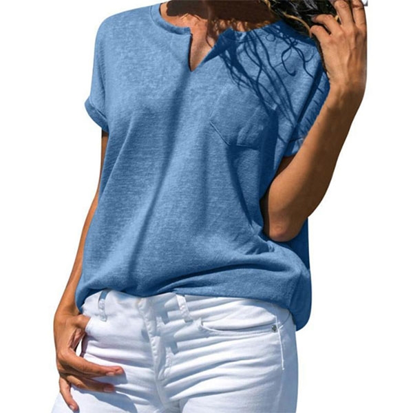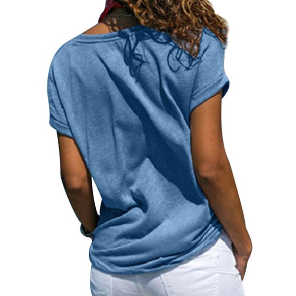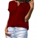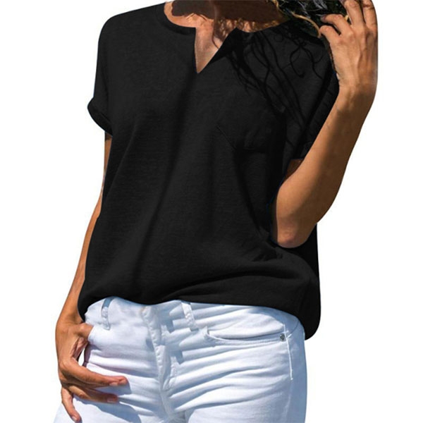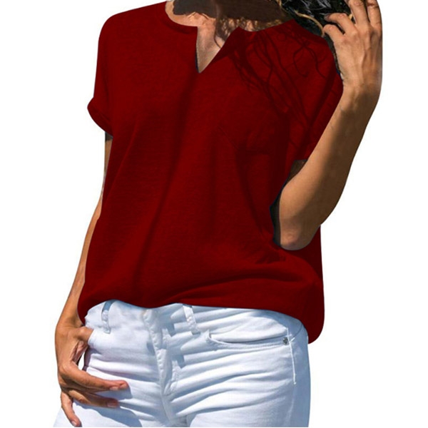 Fashion Solid Color Short Sleeve V-neck Loose T-shirt