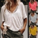 your attention. Solid color style,the unique v-neck design is the highlight,which can easily boost its charm.