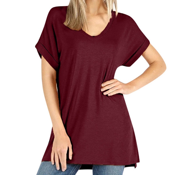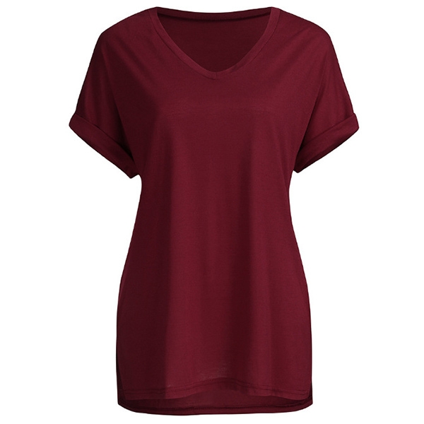 Comes with a solid color,finished with short sleeve,v-neck and a loose silhouette,