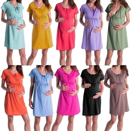 For these pregnant women,this dress is a good choice. It comes with a solid color,simple yet generous.