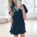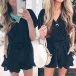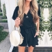 This piece boasts a classic yet stylish black tone,finished with short sleeve and v-neck design,