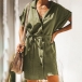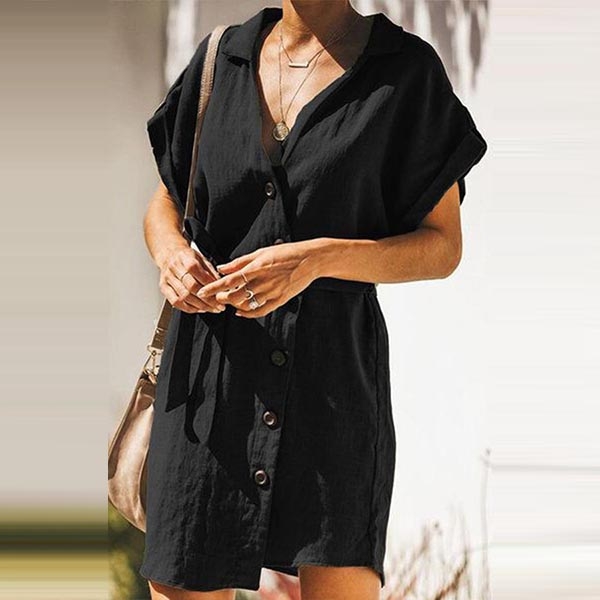 on this shirt dress! It comes with a solid color,finished with short sleeve,v-neck and single-breasted design,
