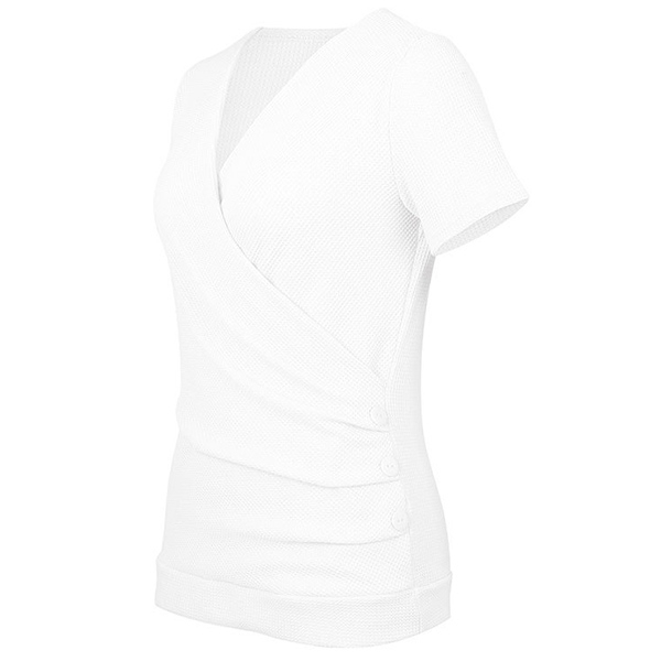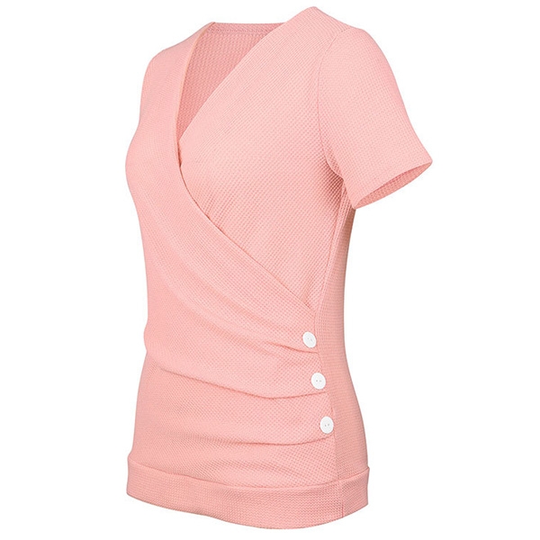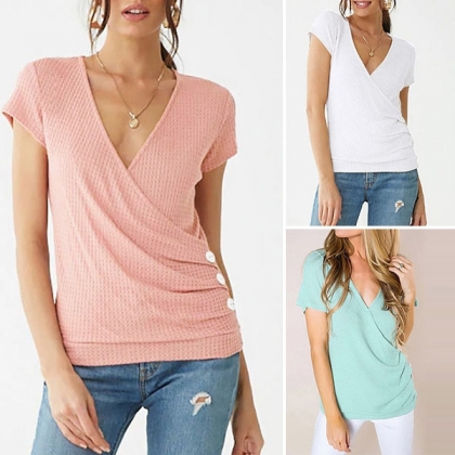 Coming with a solid color,the v-neck and side-button design enriches the design style as