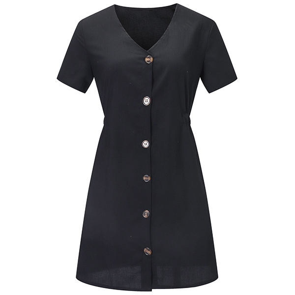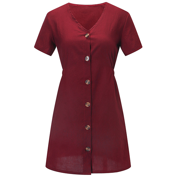 Crafted in a solid color,finished with short sleeve,v-neck and single-breasted design,this dress that exudes style