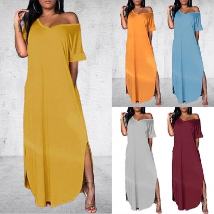 with short sleeve,v-neck and slit hem design,this piece not only can offer you a