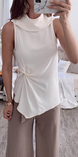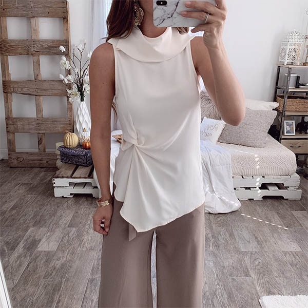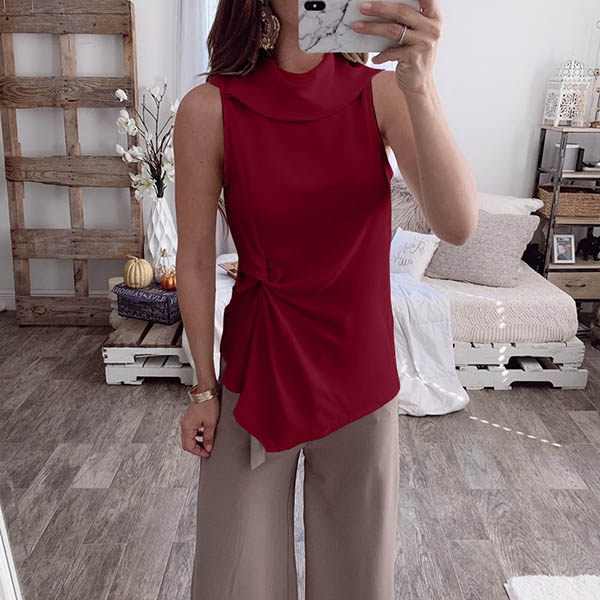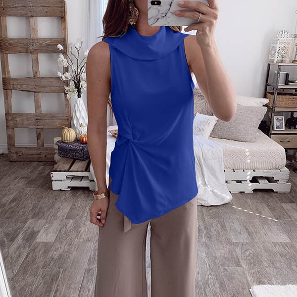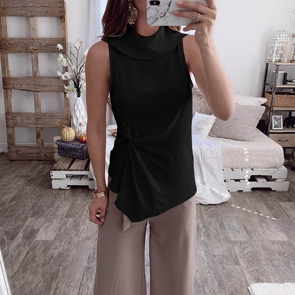 Fashion Solid Color Sleeveless Cowl Neck Irregular Hem Top