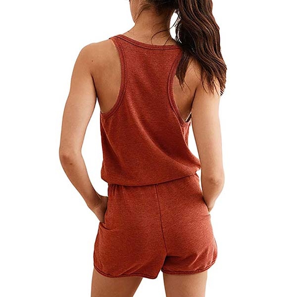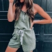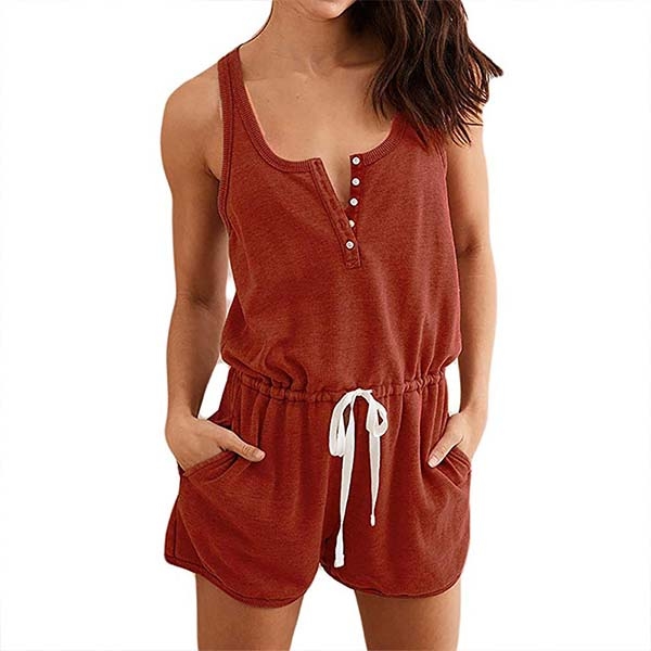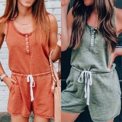 make your eyes focused on this romper. Solid color style,with sleeveless,round neck and drawstring