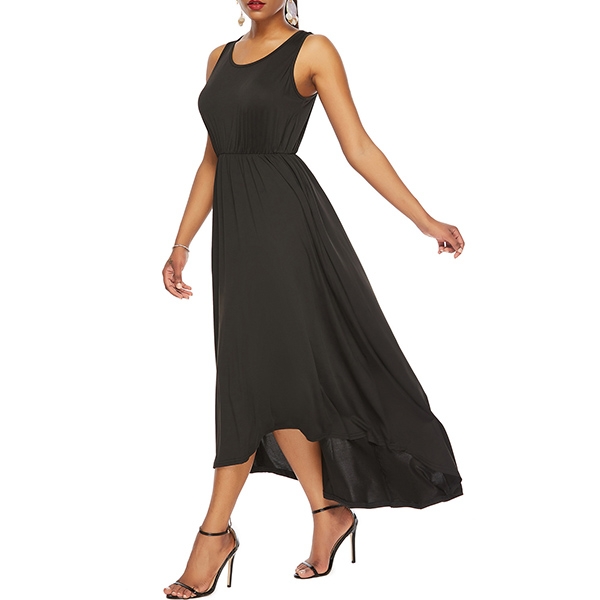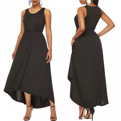with a solid color,with sleeveless,round neck and high-low hem design,delicate yet stylish.