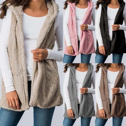 In this early autumn,this plush vest can be your good choice. It is styled with solid color,sleeveless and
