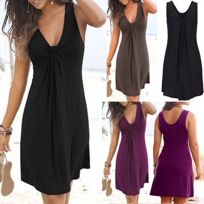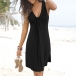 Denna klänningär tack vare sin enkla och eleganta design perfekt för varma sommarkvällar. Klänningenär enfärgad och dess stickade och V-ringade design framhäver dess charm. Varesig du ska ut på stranden eller på en dejt så kan du räkna med att klänningenkan framhäva både din stilfulla och vackra sida.