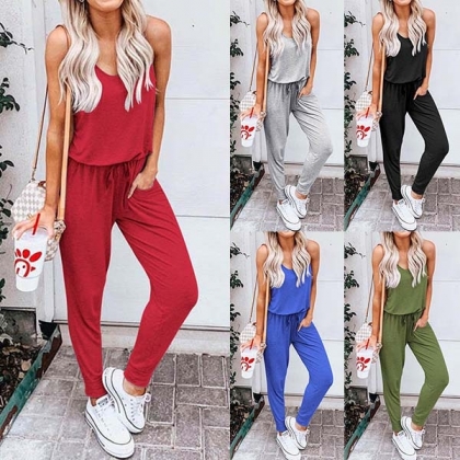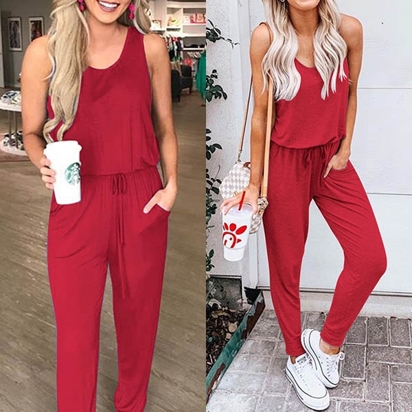 Except for dresses,this sleeveless jumpsuit also can be your good choice for the coming summer.