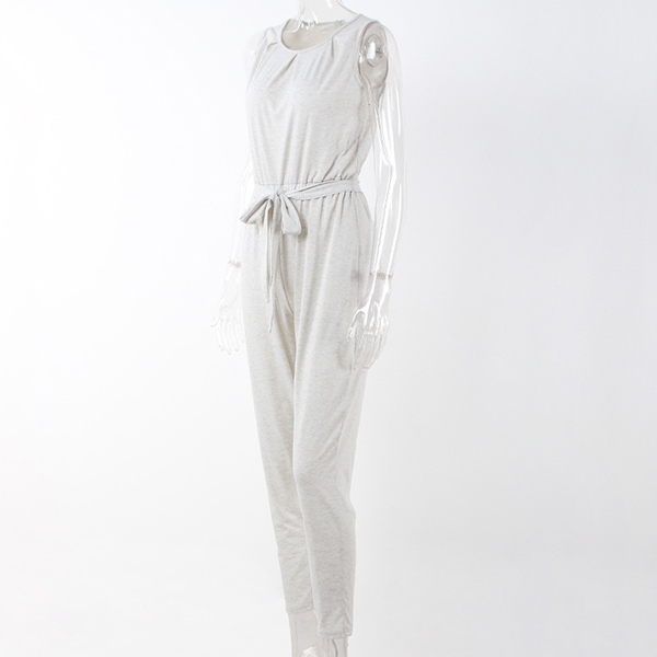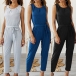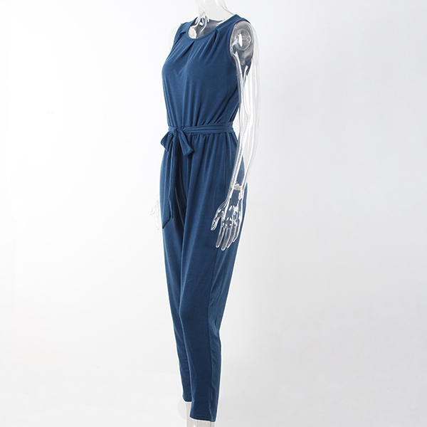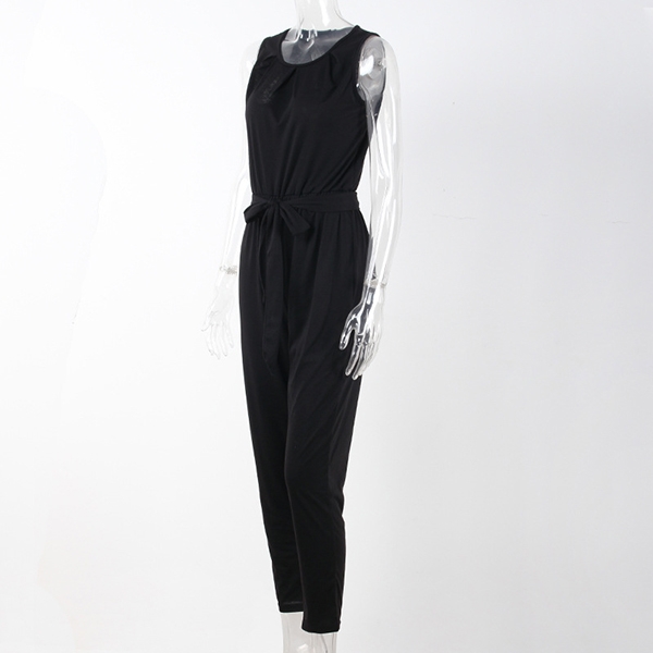 Fashion Solid Color Sleeveless Round Neck High Waist Jumpsuit