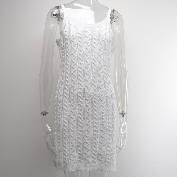 Fashion Solid Color Sleeveless Round Neck Hollow Out Knit Dress