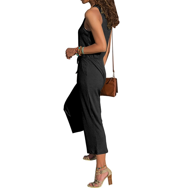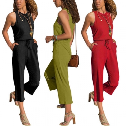 Fashion Solid Color Sleeveless Round Neck Jumpsuit