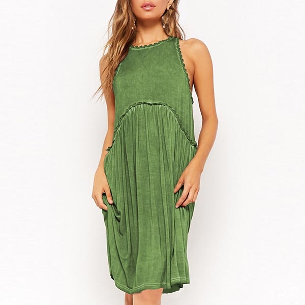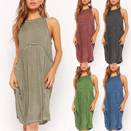 Coming with a solid color,finished with sleeveless,round neck and a loose silhouette design,