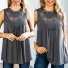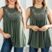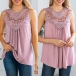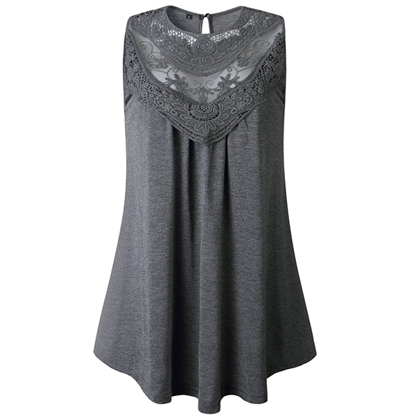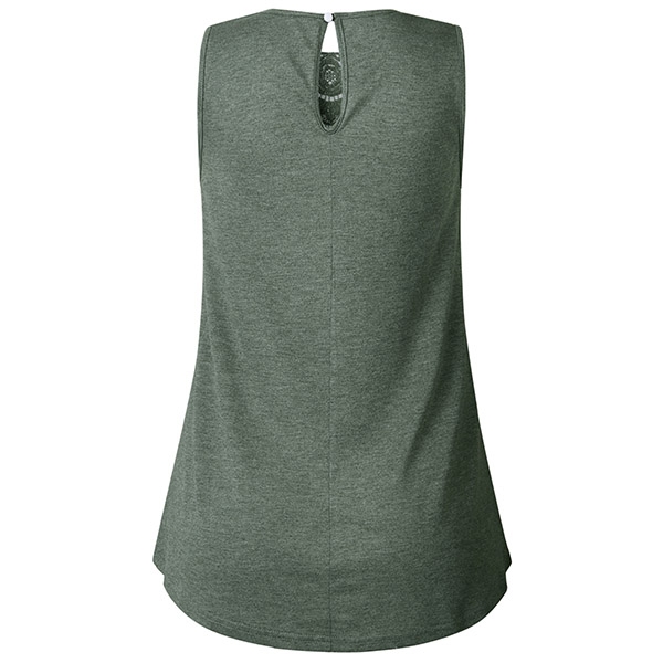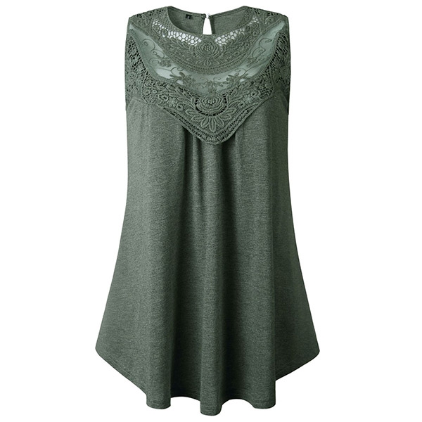 Fashion Solid Color Sleeveless Round Neck Lace Spliced Top